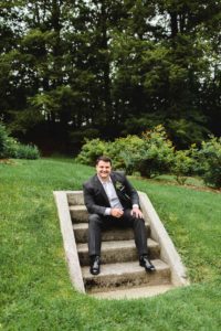 alumni-bride-looking-up-to-landing-with-gown-flowing-around-stairs